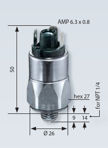 最高耐压600bar,最高电压42V,开关压力可调,多种螺纹可选,结构紧凑,寿命长